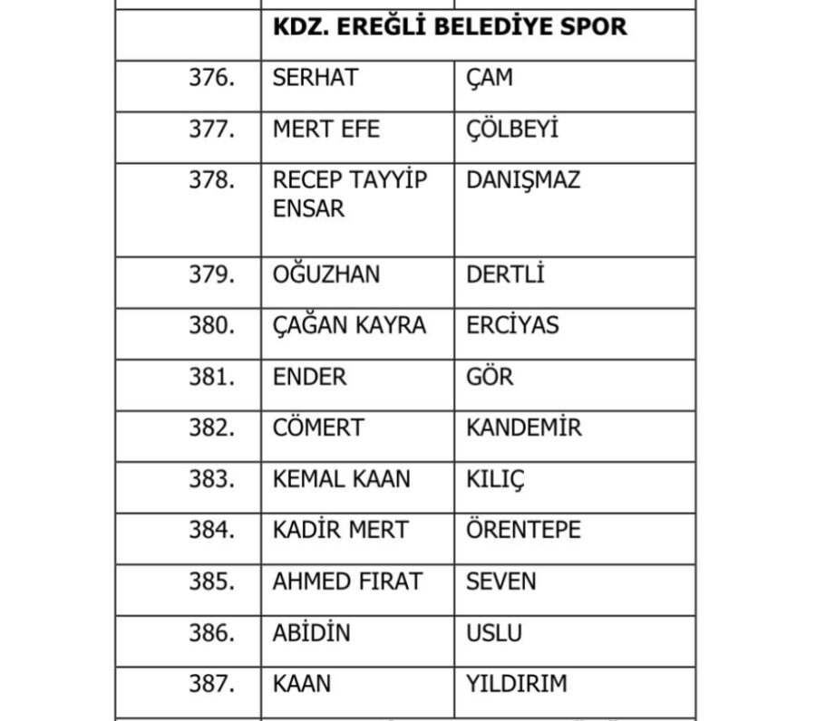 Yapılan incelemelerde Kdz. Ereğli Belediyespor’dan da 12 futbolcunun bu listede yer aldığı öğrenildi. Bahis soruşturması kapsamında adı geçen futbolcular şu şekilde açıklandı: