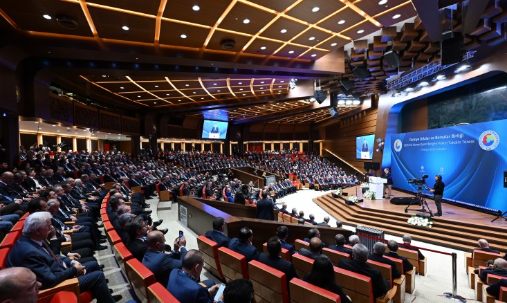 Başkan Erdoğan, Türkiye Odalar ve Borsalar Birliği Delegesi olarak Birlik çatısı altında 10. 20. ve 30. yılını tamamlayan ve bundan dolayı da Şeref Belgesi almaya hak kazanan üyeleri tebrik etti.