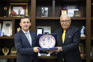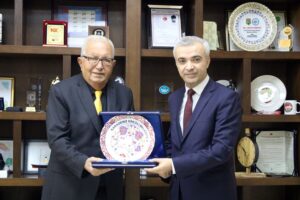 Başkan yardımcılarının da hazır bulunduğu ziyaretin ardından Başkan Posbıyık, Erbaş ve Tetik’e çini tabak plaket takdim etti birlikte hatıra fotoğrafı çekildi.