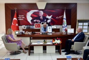 Almanya’nın Düren şehriyle kardeş kent ilişkilerini geliştirme çabaları devam ediyor. Düren’de açılan Kdz. Ereğli Meydanı’nın ardından bugün Ereğli sahilinde açılacak Düren Kent Parkı açılışı için Düren Belediye Başkanı Frank Peter Ullrich, Belediye Başkanı Eşi Iris Ullrich, Belediye Başkanı Özel Kalemi Mr. Sebastian Eich, Belediye Basın Danışmanı Mr. Dirk Zirke, Yeşiller Partisi Meclis Üyesi Nermin Ermiş ve Kardeş Şehir Temsilcisi Sabine Kieven Kdz. Ereğli’ye gelerek Belediye Başkanı Halil Posbıyık’ı makamında ziyaret ettiler.