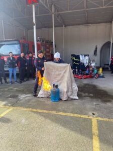 Kışla Merkez İtfaiye’de başlayan pratik eğitimlerde ilk haftada öğrenciler, itfaiye binasını, itfaiye araçlarını, yangından korunma ve yangına müdahale ekipmanlarının tanıtımının ardından hortum atma ve hortum toplama işlemleri gerçekleştirdiler.