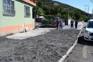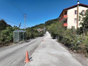 Bölgeden geçen ağır tonajlı araçlar nedeniyle bozulan yolda Belediye Fen İşleri Müdürlüğü ekiplerince başlatılan çalışma sonucu öncelikle bozulan zemin söküldü. 2 şerit, 400 metre uzunluk ve 7 metre genişlikte beton yol yapım çalışmalarında sona gelindi.