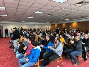 Şube Başkanımız Sayın Altan KALFA’nın TAT Metal Emekçilerimize aktardığı 5.Dönem İş Sözleşmesi maddeleri Yiğit TAT Metal Emekçisi Üyelerimiz tarafından bayram coşkusuyla karşılandı.