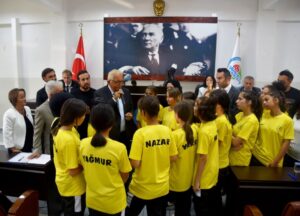 “Okul Sporları Federasyonu Türkiye Şampiyonası’nda Kırıkkale’de ve Manisa’da oynanan maçlar sonrasında Türkiye 2’ncisi olan Atatürk Ortaokulu Yıldız Kız Futbol Takımı’nı tebrik ediyoruz. Belediye meclisimizin amacı sporu ve gençleri teşvik etmek, özendirmek ve diğerlerine örnek olup rekabeti artırmak. Bu gençlerimizi tebrik ediyorum. Özellikle ailelerinizi sizleri futbola yönlendirdikleri için kutluyorum. Sizlerden sadece sporda değil, eğitimlerinizde de başarı bekliyorum. Ben hocalarınızdan takip edeceğim, eğer derslerinizde de başarı gösterirseniz sizleri ayrıca ödüllendireceğim. Büyük Önder Atatürk’ün kurduğu Cumhuriyette demokrasiyi sizler savunacaksınız. Sizleri seviyorum ve hayatlarınızda başarılar diliyorum.”