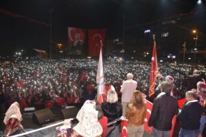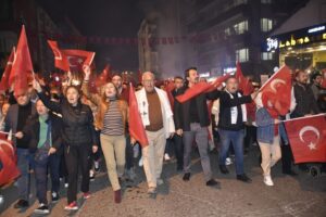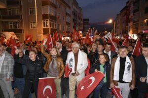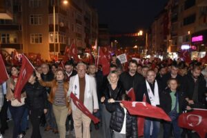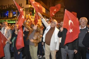 Atatürk ve Cumhuriyet sevgisini hep bir ağızdan haykıran, omuz omuza Türk Bayrağını dalgalandıran halk, sokakları insan seline döndürdü. Vatandaşlar, “Mustafa Kemal’in Askerleriyiz’ diye hep birden haykırdı.