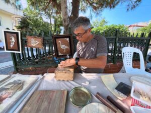 Aynı gün öğleden Tarihi Akkuyu Meydanı Kadın El İşi Pazarı’nda destek amaçlı Nihat Özbek tarafından Akkuyu Meydanı’nda İntersia Sedef Kakma Çalışması etkinliği düzenlendi.