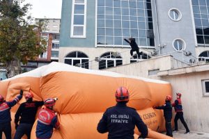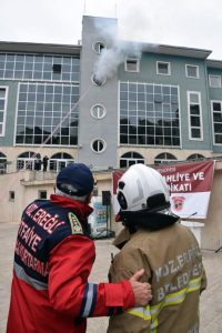Tatbikatı izleyen vatandaşlar da alkışlarla İtfaiye ekibine destek oldular.