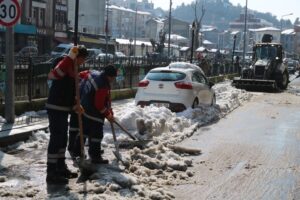 Kdz. Ereğli’de kar yağışının kesilmesinin ardından belediye ekipleri yol kenarlarında oluşan kar kütlelerini şehir merkezinden itibaren kaldırma çalışmalarına başladı.