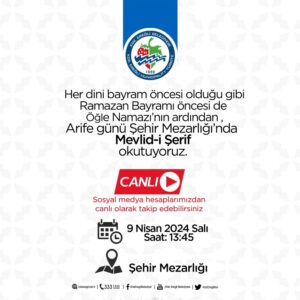 Mevlid programı saat 13.45’dan itibaren SBD TV’den canlı olarak yayınlanacak. Program sonunda gelen vatandaşlara mezarlıklara dikmek üzere mevsimlik çiçek dağıtımı yapılacak.