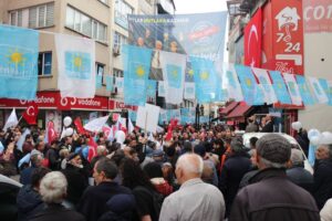 Mahalle mahalle beni çağırıp her kürsüye beni çıkartıp konuşturan siz değil misiniz? Elinizden tutup halka sizi ben götürmedim mi? Dün peşimde koşanlar bugün, Neymiş; otobüsüm geziyormuş, gezmesin. Resimlerim asılıyormuş asılmasın, konuşma yapıyormuşum, yapmasın. Bunların hiç birinden bir şey elde edemeyince en sonunda Türkiye’de hiç örneği olmayan, oy pusulalarına adayların resminin konulmasını istediler. Yav siz, ne yiyip içiyorsunuz? Neymiş; Ben AK Parti’nin oylarını bölüyormuşum. a sizin sünepe adayınız hangi seçimde AK Parti’yi desteklemiş? Çıkın söyleyin. 2004’te, 2009’da, 2014’te ve son olarak 2019 seçimlerinde sizin bu sünepe adayınız kimi destekledi? Çıkın açıklayın. Ben size söyleyeyim; sizin bu adayınız her seçimde gitti Halil Posbıyık’a destek verdi. Hatta 2019 seçimlerinde Halil Posbıyık’a proje verdi. AK Parti’ye her seçimde ihanet eden bu zübük, bir de mahkemelerde yargılanıyor? Aldığı benzinin parasını ödemez, çatı yaptırır, işçilerin parasını ödemez, para alır projeyi teslim etmez, aldığı paranın üstüne yatmaya kalkar, kat karşılığı iş alır daireleri teslim etmez, tavuk çiftliğine ortak olur, vatandaşın malına çökmeye kalkar. Halkta karşılık bulamayınca da gece gündüz bana saldırıyorlar. Sizin zübük adayınızın halkta karşılığı olmadığını, parti tabanında karşılığı olmadığını, yapılan anketlerde hepiniz biliyordunuz. Şimdi niye şaşırıyorsunuz ki? Sizin adayınızdan bırakın belediye başkanı, başkan yardımcısı dahi olamaz.” Dedi.