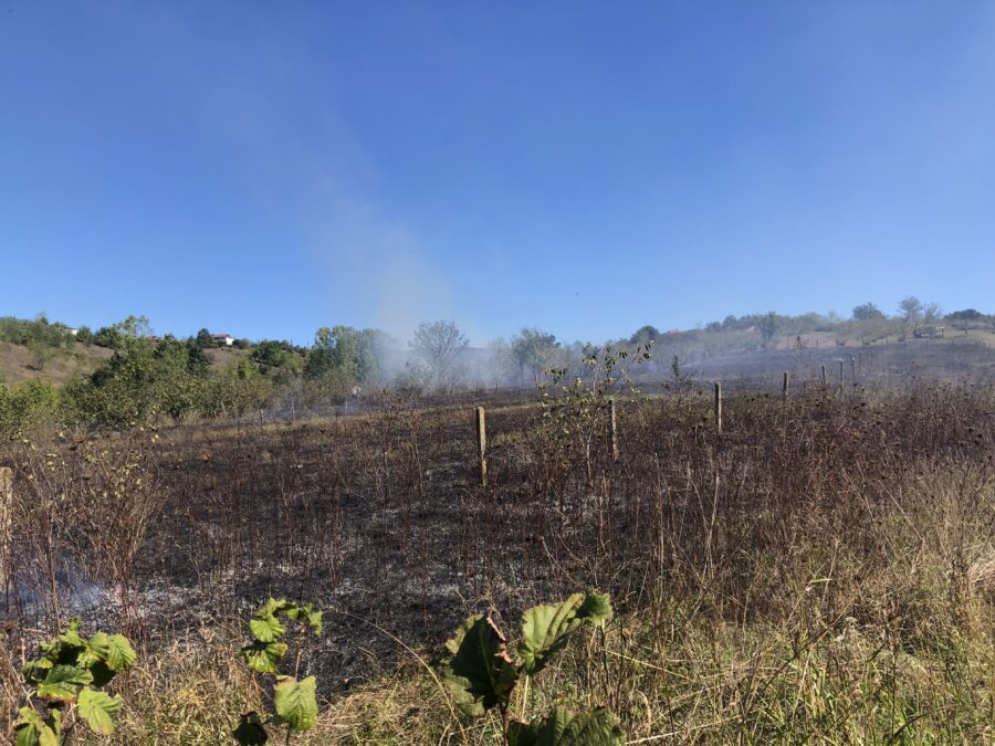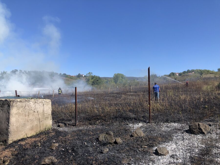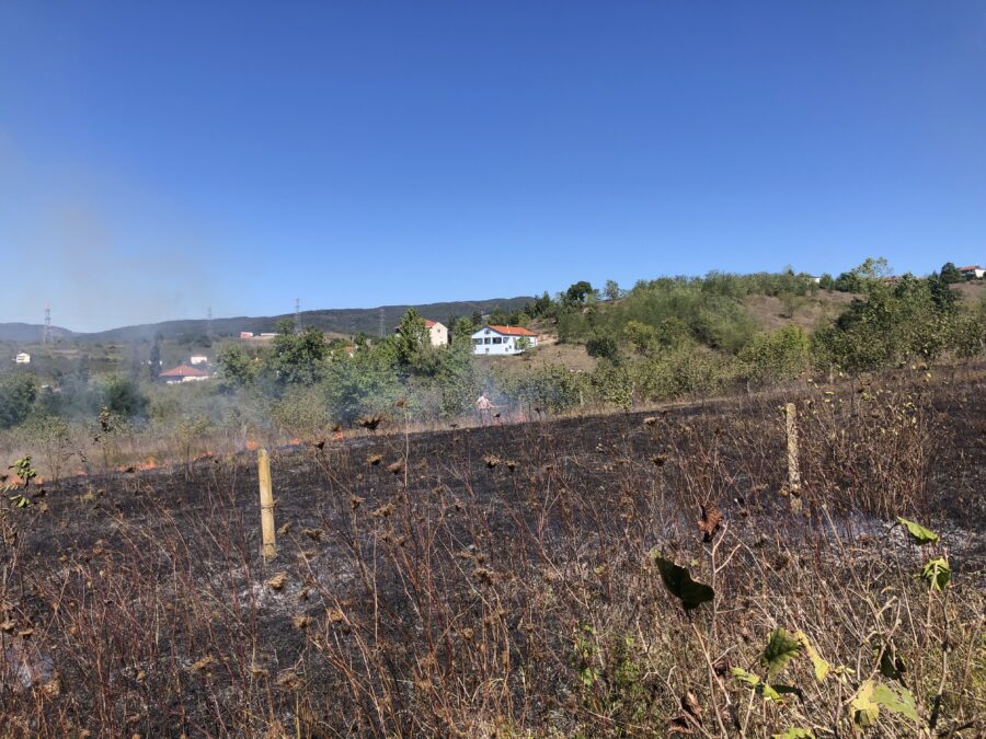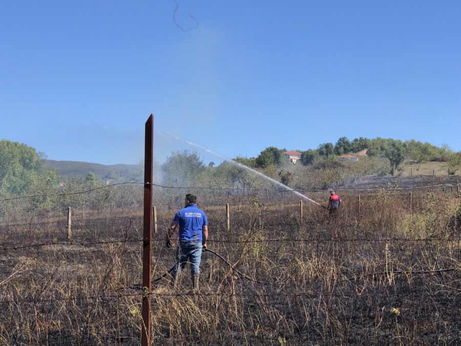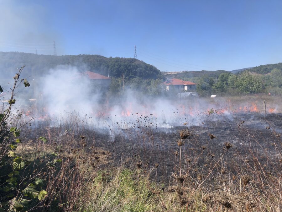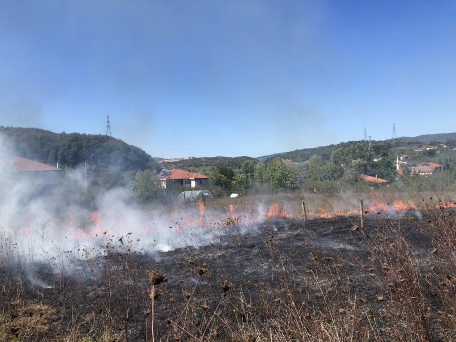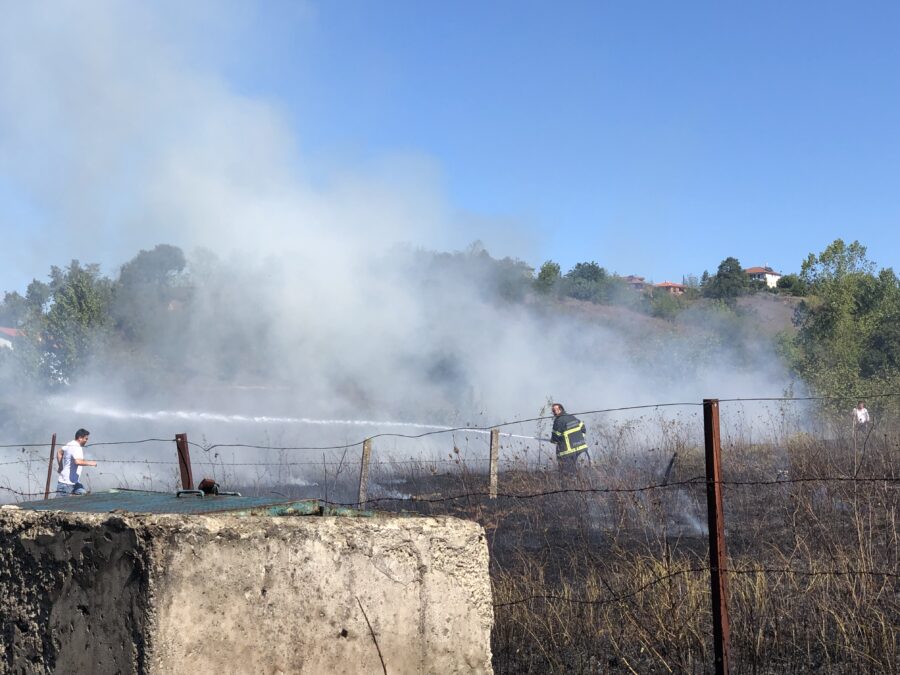 Olay, kuru otların tutuşmasıyla hızla yayılmaya başlayan yangın, rüzgarın da etkisiyle komşu arazilere sıçrama riski oluşturdu.